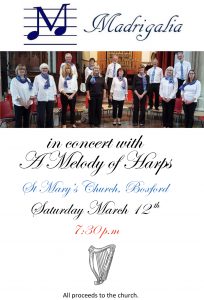 Location Key Boxford Edwardstone Groton Little Waldingfield Milden Newton Green Find Events Event Views Navigation View As List Month Day Day Of Search Events for 12th March 2022 Day Navigation « Previous Day Next Day » 7:30 pm Madrigalia in Concert With A Melody of Harps 12th March 2022 @ 7:30 pm - 9:30 pm St Mary’s Church, Boxford, St Mary's Church Boxford, co10 5DU All proceeds to the church. Find out more » + Export Events