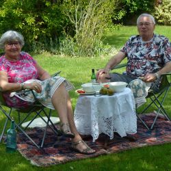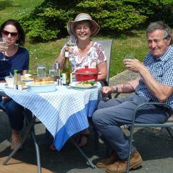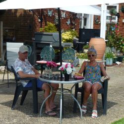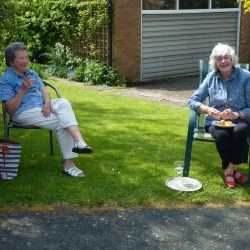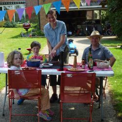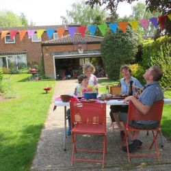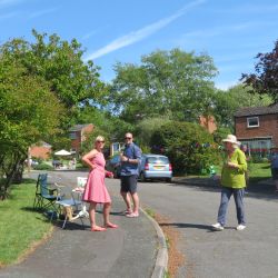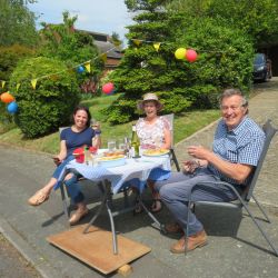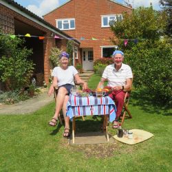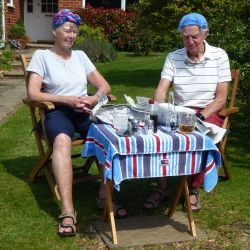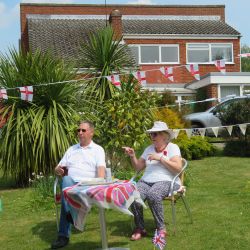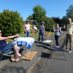 A few days prior to VE75 day, we in The Causeway decided to hold our own street party, having been very disappointed that the official Boxford VE75 Street Party had to be cancelled. We designed our own invitations based on the original plans. Gardens were decorated with bunting and flags. Our neighbours hosted their own parties on their own front lawns. It was VE75 in The Causeway style and well organised. We didn’t hold back and had a great time. The wonderful weather contributed to the party lasting over 6 hours. Social distancing was observed (yes we did). Some had even been around for the original VE celebrations.